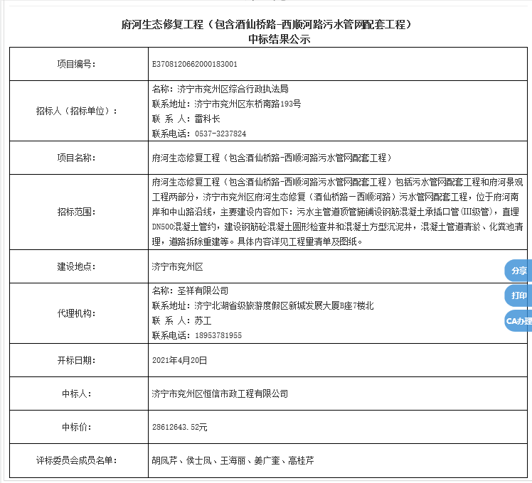 府河生態(tài)修復工程中標公示