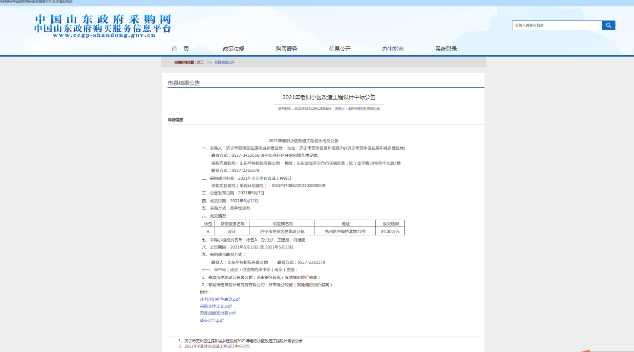 【兗州區2021年老舊小區改造項目】成交通知書