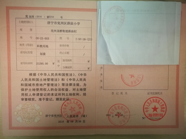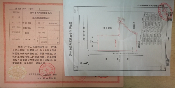 【濟寧市兗州區薛廟小學改擴建工程項目】土地信息