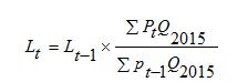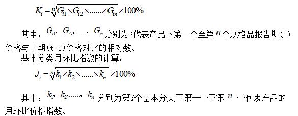 根據該代表產品下所屬代表規格品價格變動相對數,采用幾何平均法計算,計算公式為: